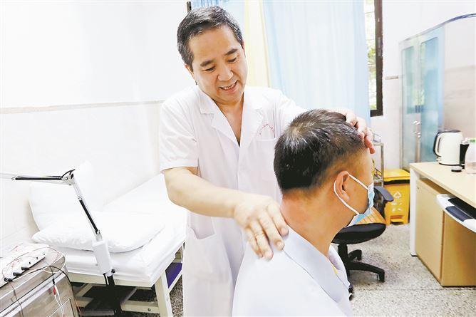 洪文新用推拿和针灸为无数病人解除病痛。(厦门日报记者 陈偲瑶摄)