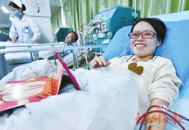 昨日下午,连江县医院血液透析室,30岁的郑浓浓半躺在病床上。血液从她的左手臂顺着弯弯的管子,流进一旁的血透机。这是郑浓浓在连江县医院进行的第241次血液透析。