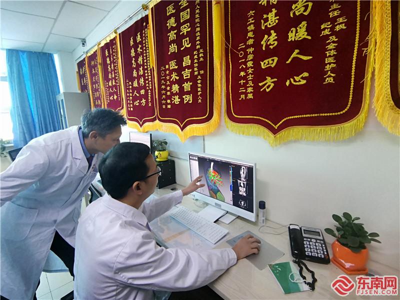 徐国兵(右)和同事在研究患者病情。 东南网记者 周桂枝摄