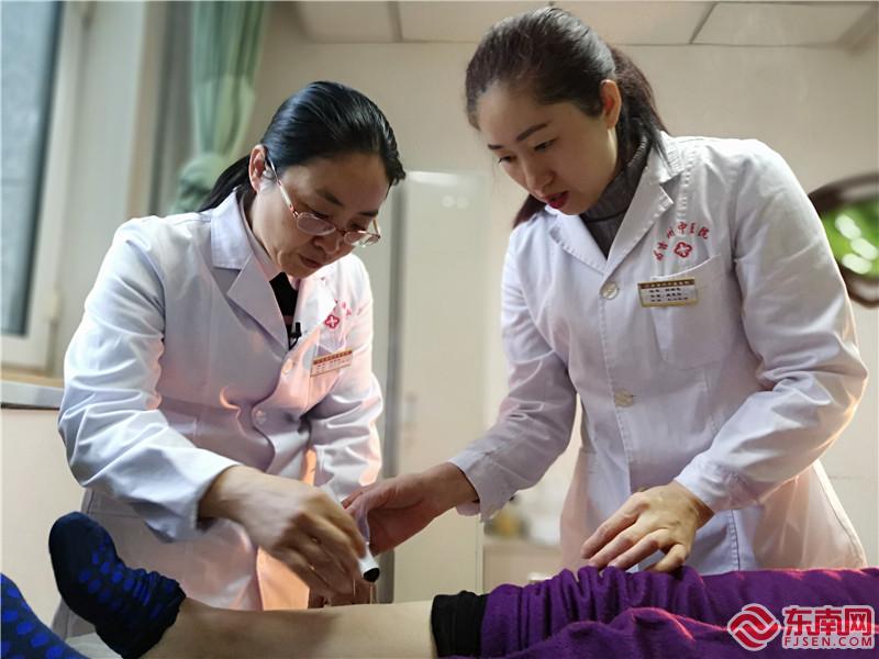 发挥“传、帮、带”的作用,谢雪榕手把手教徒弟针灸。 东南网记者 周桂枝摄