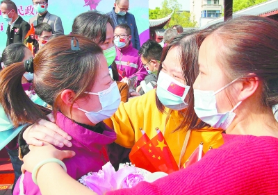 ①7日,永安市民用最高礼遇欢迎三明市第一、第四批支援湖北医疗队共27人回来。至此,三明市援鄂医疗队57名成员圆满完成支援武汉和宜昌的医疗救治任务,全部回到家乡。本报记者 游庆辉 通讯员 魏兴谷 摄