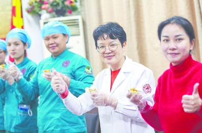 ②6日,福建日报社旗下晋江经济报携手爱心企业,将1200份泉州清明特色食品“润饼菜”分别送到坚守岗位的晋江市中医院、晋江市第一医院的医护人员手中,让他们品尝一份“爱的点心”。本报记者 王敏霞 通讯员 董严军 摄