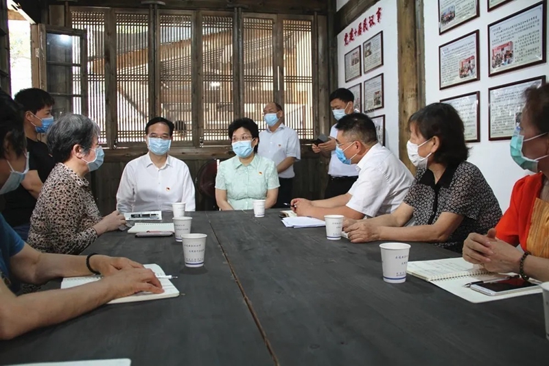 在中山社区居民议事大厅调研时,社区居民正进行“文明爱卫,人人参与”居民恳谈会,邢善萍、林宝金与社区居民围桌而坐,参与恳谈会。