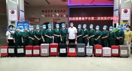 300名医疗人员组成的支援队伍由来自南平市第一医院、南平市第二医院、南平市人民医院、南平市妇幼保健院及南平各县(市、区)的核酸采样队伍组成,其中,市第一医院15人,市第二医院15人,市人民医院10人,市妇幼保健院10人、延平30人、建阳30人、武夷山30人、邵武30人、建瓯30人、浦城20人、政和20人、松溪20人、光泽20人、顺昌20人。