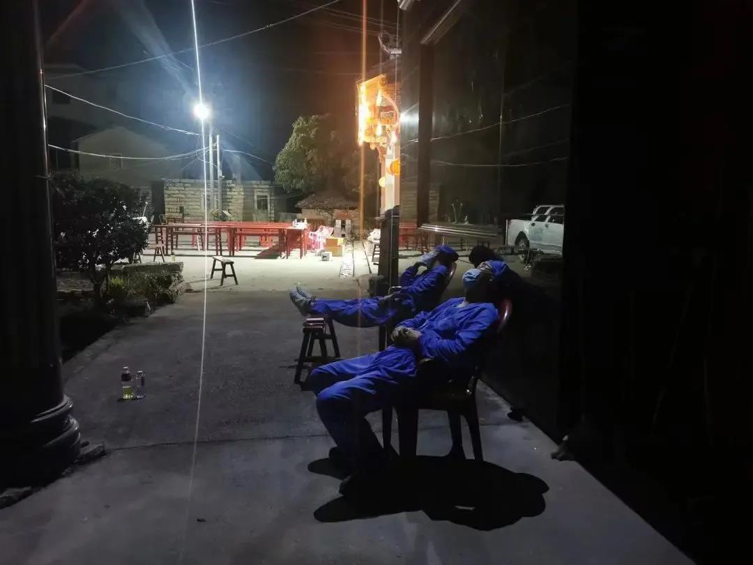 他们不畏炎热,穿着厚重的防护服,汗水湿透衣背,不停地重复采样工作,却没有一个人叫苦叫累。凌晨时分,终于能够停下采样,找个地方,闭上眼睛歇会儿。截止目前,孟超肝胆医院核酸采样突击队,共为1783名村民采样。