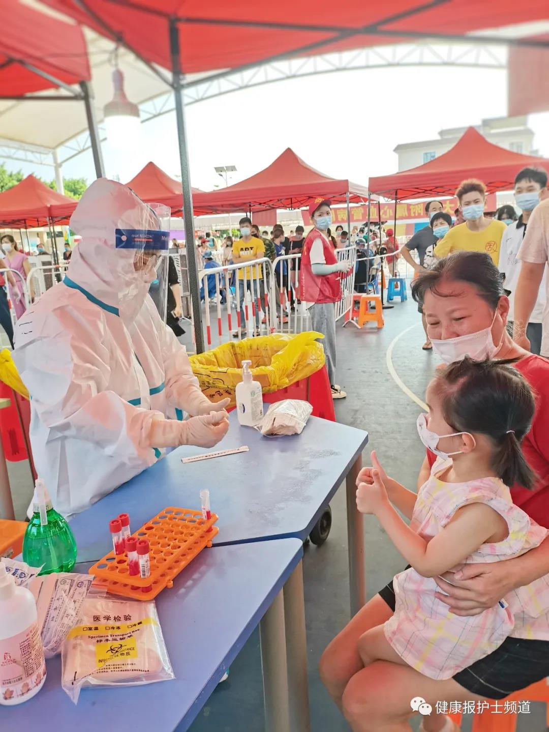 “阿姨,我很勇敢。”在采样现场,这是孩子们说得最多的一句话,懂事又可爱。“来,把头轻轻地抬起来,放轻松。对,很乖,让阿姨检查一下,看看牙齿上有没小虫虫啊。”队员喻志燕说,给孩子采样,需要更多耐心和技巧。孩子们大多都很配合,采样完成时,还时常有孩子竖起大拇指为护士点赞。