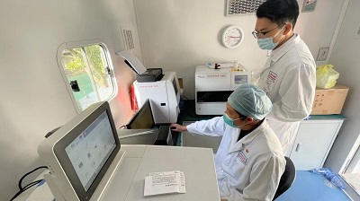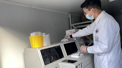 随着门诊车、医技保障车、移动CT车等迅速展开,30分钟内移动医院就在基地广场搭建完毕。CT、超声、心电图全部开张,血常规、生化等相关常规检验项目也强势助力,半小时内即出检测结果,为义诊专家的准确诊断提供可靠依据,也为现场参加义诊的群众带来全套医疗服务。
