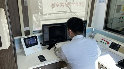 义诊现场群众参与的热情也深深感动着大家,既定结束义诊的时间到了,还有患者围着专家咨询,在临时搭建的帐篷里,超声科陈玮吉副主任医师一刻也没有停下手中的操作,移动CT车里,吴建满主治医师仍在认真的读片写报告……移动医院巡诊,为的就是把惠及民生的医疗项目,实实在在送到百姓身边。