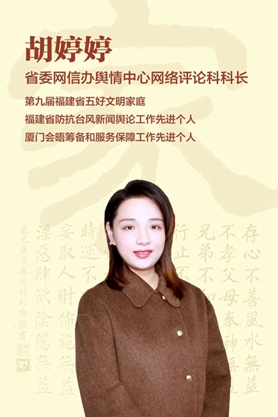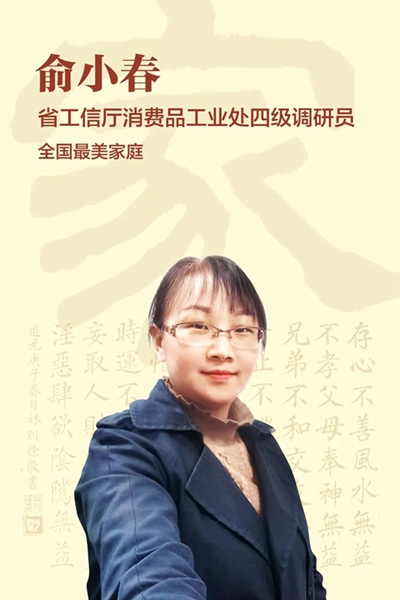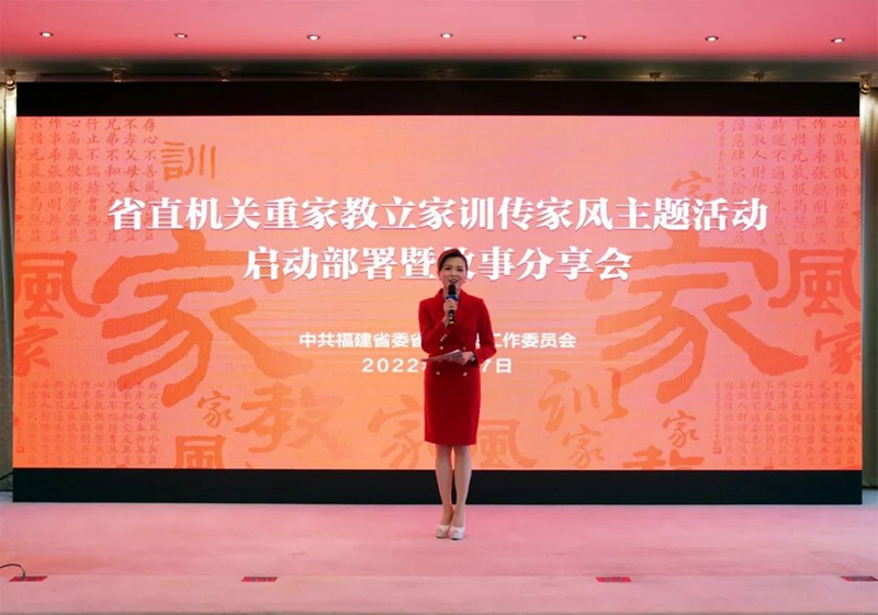 会上,对省直机关2021年全国最美家庭和福建省绿色家庭表彰对象进行颁奖。8位省直机关先进家庭代表从不同角度分享了自己的家风家训家教故事。他们从自身做起,从身边带起,以“小家”文明构筑“大家”风尚,让与会者亲身感悟了优秀家风的精神力量。