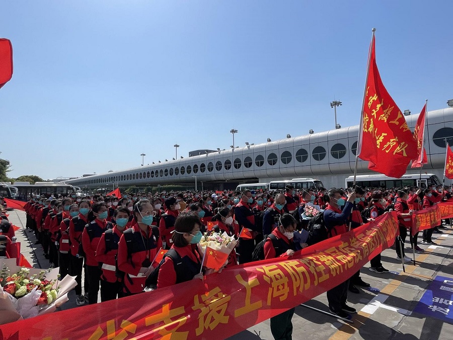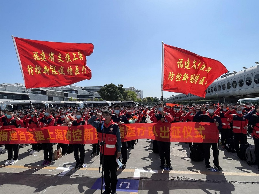 受省委书记尹力、省长赵龙委托,省委副书记、政法委书记罗东川,省委常委、厦门市委书记崔永辉,副省长李德金专程前往机场为医疗队壮行。厦门市市长黄文辉以及厦门市、漳州市、龙岩市有关领导共同为医疗队送行。崔永辉主持医疗队出征仪式,罗东川向省援沪医疗队代表、厦门医学院附属第二医院副院长、厦门分队负责人李湧授旗。李德金在出征仪式上讲话,代表省委省政府向出征的医护人员致以崇高敬意和衷心感谢。省援沪医疗队厦门、漳州、龙岩医护人员代表分别发言。医疗队全体队员在庄重宣誓后,登上班机,直奔上海。
