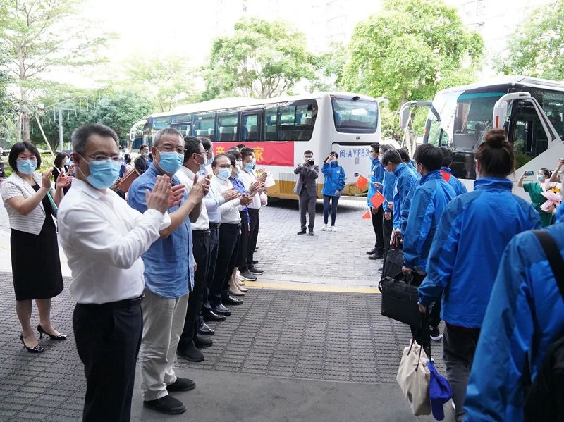 5月5日下午,省委省直机关工委、省卫健委在福州仓山休整驻点,欢送30所省、市属医院136名抗疫人员顺利结束休整和健康管理离点。至此,省直机关874名赴泉州、宁德支援抗疫人员已全部结束休整和健康管理,返回工作岗位。