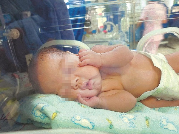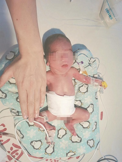 刚出生时,阳阳只有成人手掌大小。(三明市永安总医院供图)