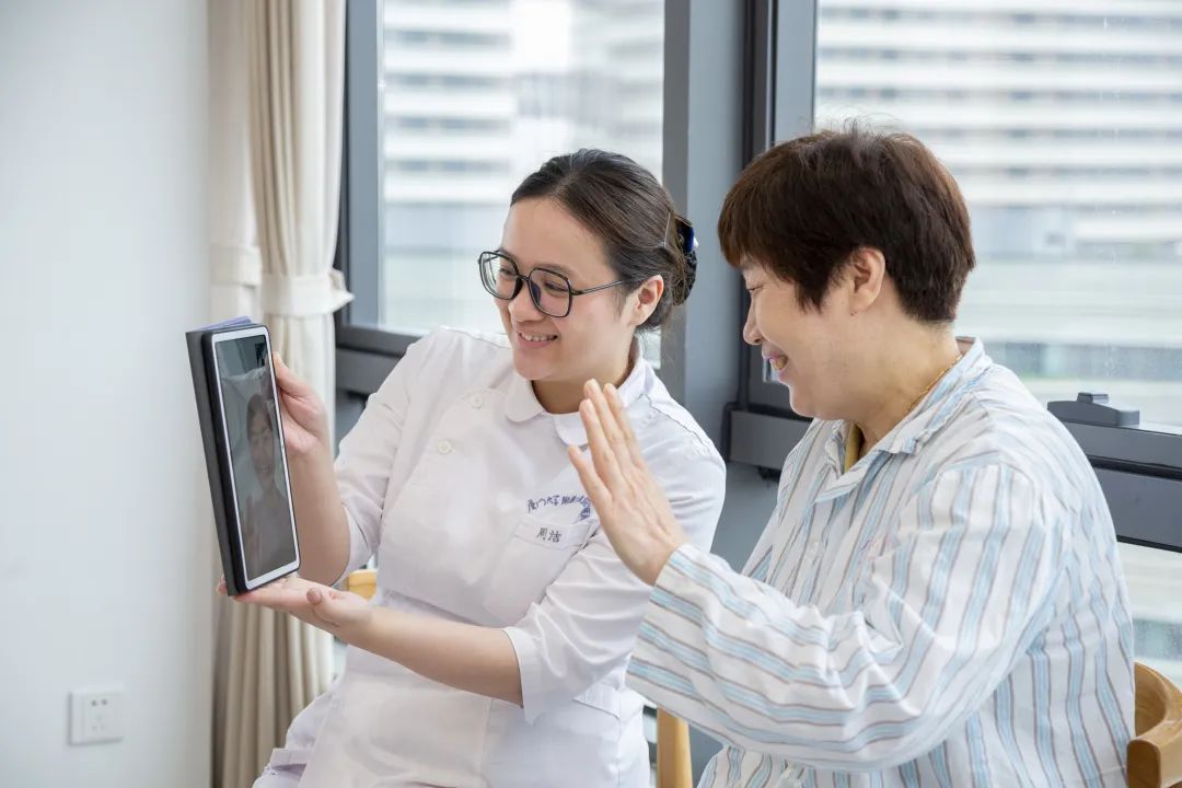 住院多日,患者王大爷已习惯了这家医院的独特模式:家人止步病区外,住院的护理和生活照护皆由护士和护理员“包办”,三餐定时派送到病房,做检查时,由一支专业的带检团队全程带检,形成安全闭环管理。患者可随时在护士协助下通过视频设备与家属进行聊天。