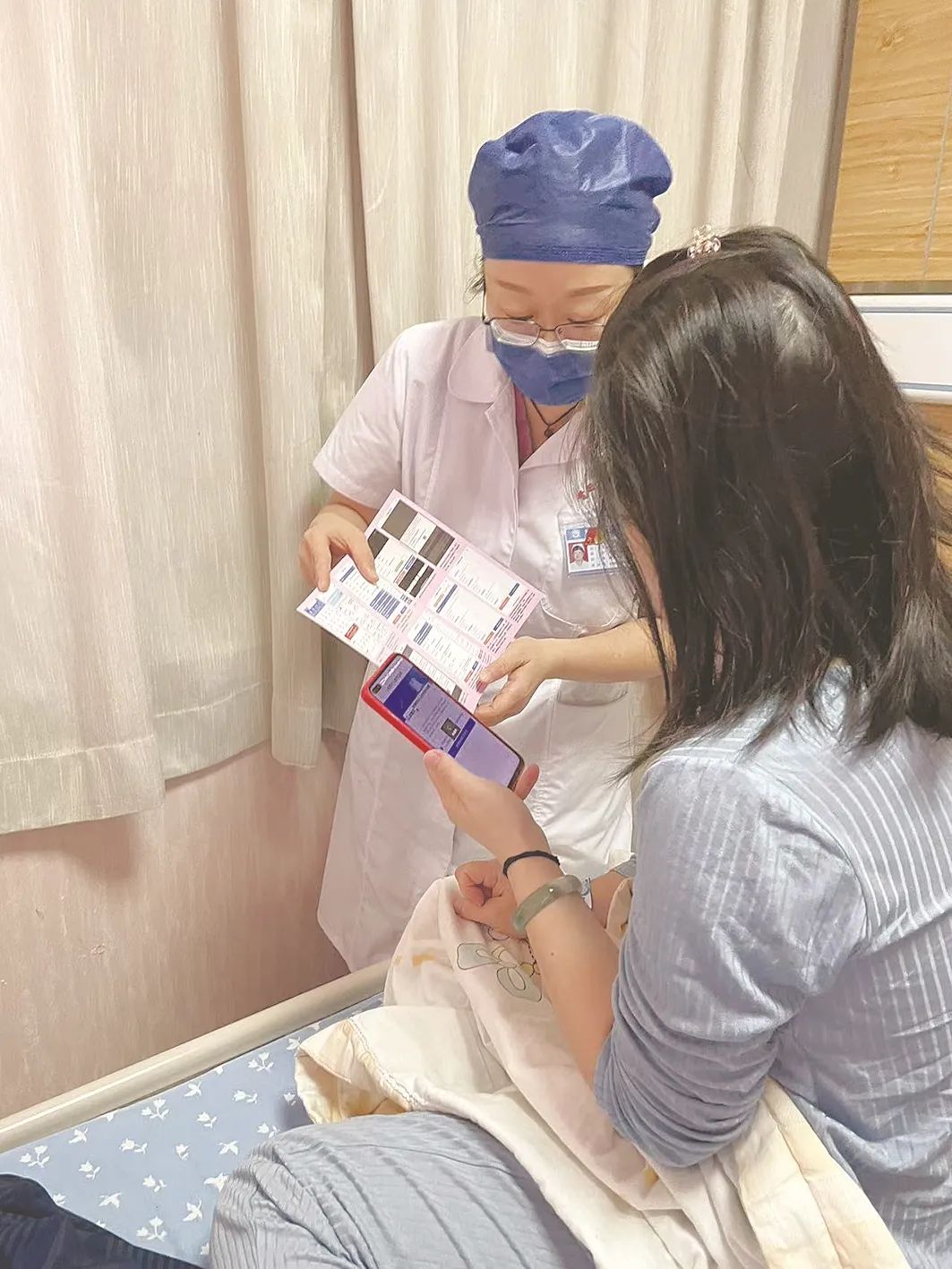 ▲莆田市第一医院工作人员向产妇宣传“出生一件事”