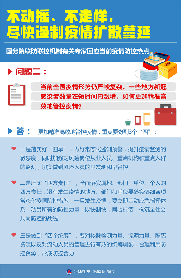 答:更加精准高效地管控疫情,重点要做到3个“四”: