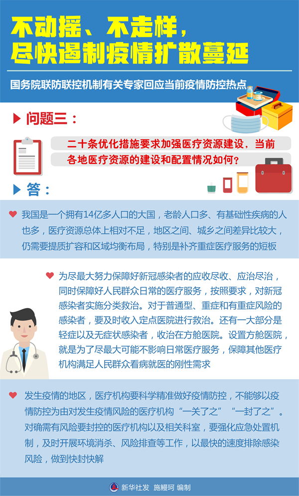 连日来,我国发布进一步优化疫情防控工作的二十条措施,印发了核酸检测实施办法、风险区划定及管控方案等四个技术性文件,各地落实情况怎么样?如何更加精准高效地管控疫情?医疗资源的建设和配置情况如何?围绕公众关注的热点问题,国务院联防联控机制有关专家作出权威回应。