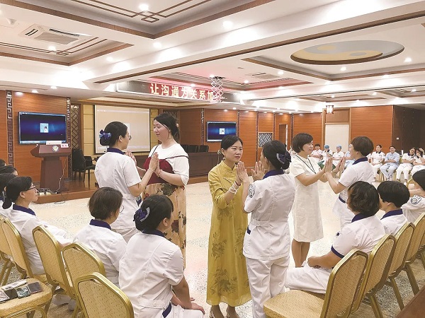 漳州市中医院今年护士节前夕,特别邀请NLP幸福心理学导师、国家级情绪疏导师、国家级健康管理师(三级)沈心团队,为护士开设NLP心理学课堂。课堂以练习为主,以讲解为辅,强调身心运作,通过模仿动作,感受改变。