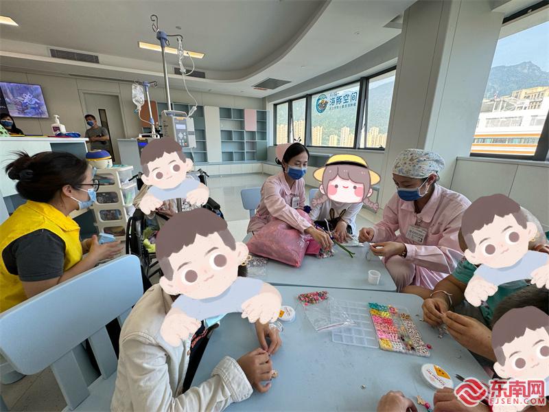 患儿们在海豚空间和志愿者以及护士们度过快乐时光。