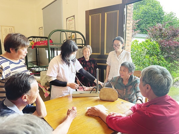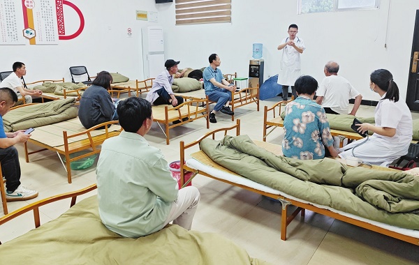 4天前,吴大爷从家里紧急转移到安置点时,忘记带治疗高血压的药,出现头晕等不适症状。接到村里健康网格员的通知后,小湖镇卫生院立即组织“4﹢ N”全民健康服务团队带着药品,冒着大暴雨,驱车赶往美溪村安置点开展救治,并安排村医对吴大爷进行健康监测并及时上报随访情况。