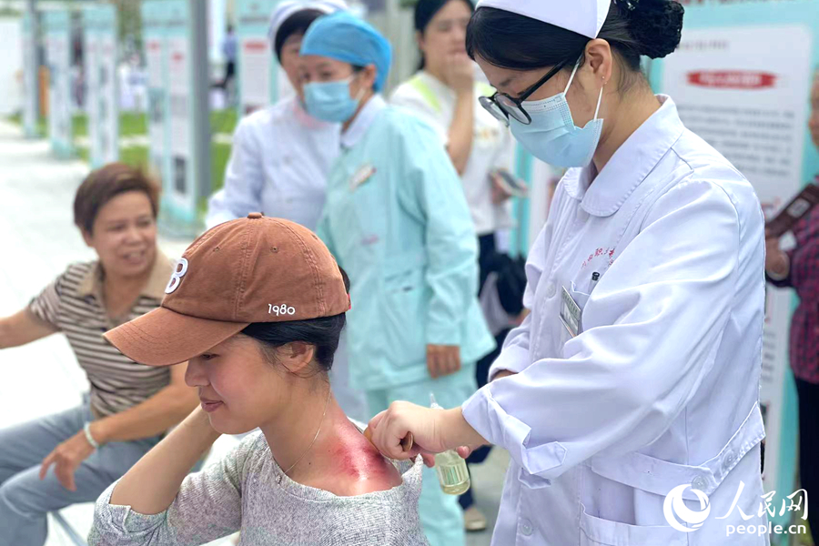 市民现场免费体验中医适宜技术。人民网记者 林盈摄