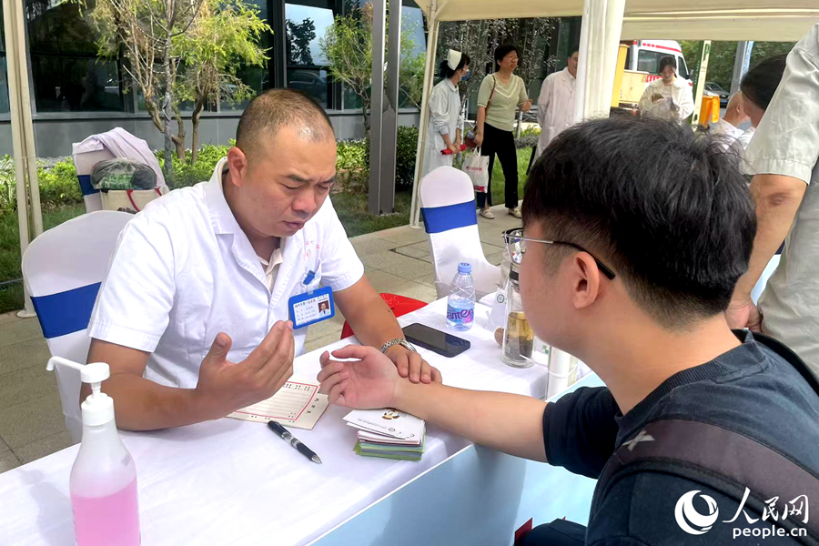 在名中医义诊区,不少年轻人加入问诊行列。人民网记者 林盈摄