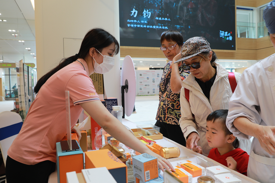 中医药文化宣传集市引市民围观。郑振盛摄