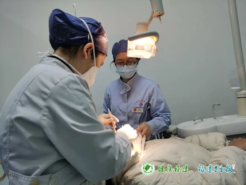 ▲周日,省级机关医院口腔科为患者治疗