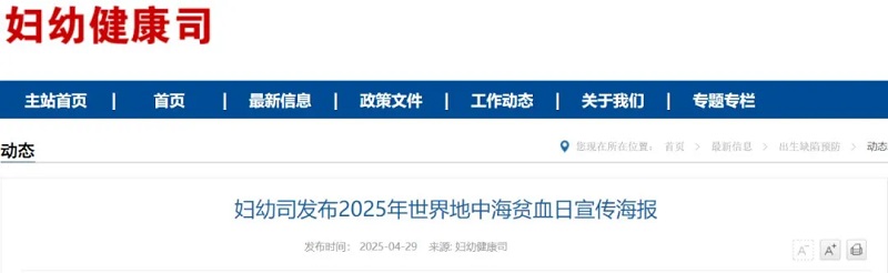 国家卫生健康委发布2025年世界地中海贫血日宣传海报