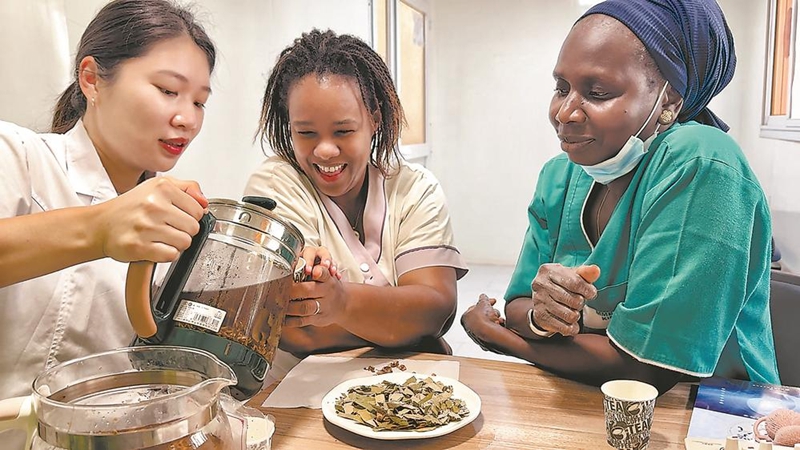 庄晨与非洲同事分享养生茶制作。