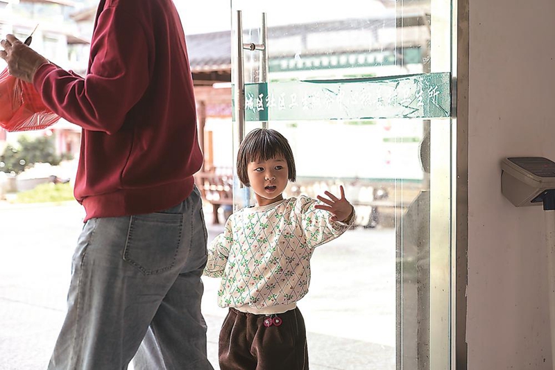 4月2日,一名在诊所看完病的孩子向杨虹挥手再见。在乡村诊所轻松的氛围里,孩子们没有了去医院看病的恐惧。