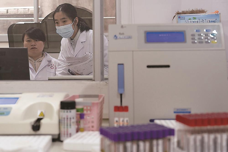 4月1日,下乡巡诊的邓天禄主任(右)和同事在白莲分院轮流接诊。