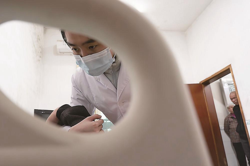 4月2日,肖涵晖在诊室里接待问诊的村民。