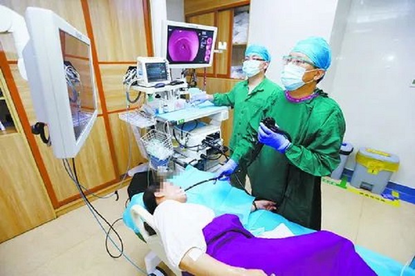 ▲国家临床重点专科、厦门大学附属中山医院消化内科医生正在为患者施行人工智能内镜胃癌筛查。