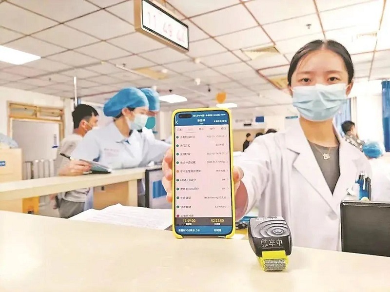 △漳州市医院急诊室内配备了5G智慧急救平台手机和电子手腕带。白志强 摄