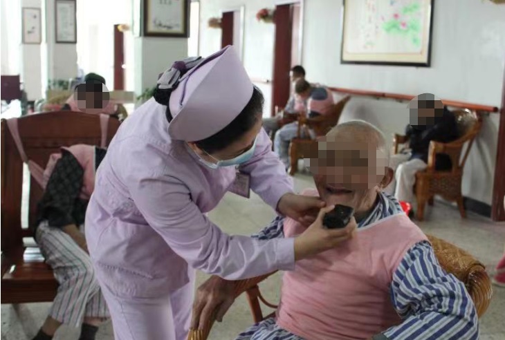 ▲在医养服务中心,护士正在照顾老人的日常起居