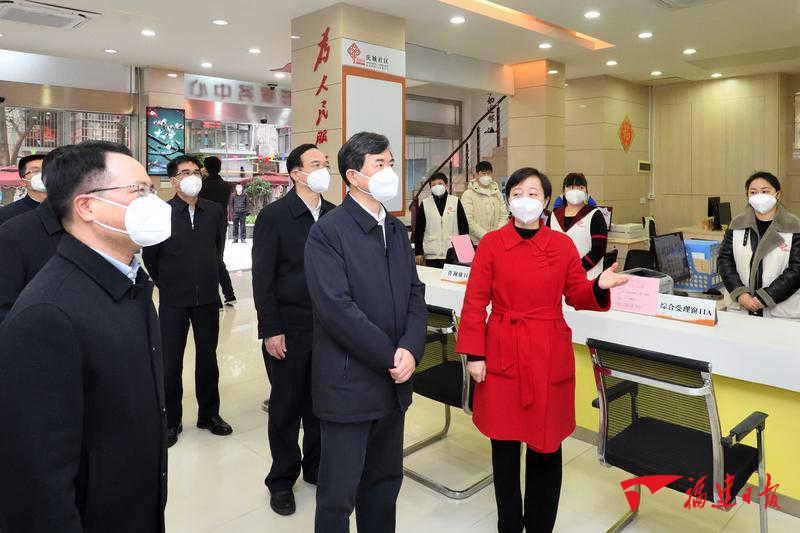 社区虽小,但连着千家万户。周祖翼走进鼓东街道庆城社区,察看社区服务中心、近邻活动中心,深入志愿服务站、书画室,关心健康防疫“爱心包”是否发放到位,详细了解社区长者食堂的菜品种类、分量、价格,与社区工作者和老年人愉快交流,了解基层党建、社区养老、疫情防控等工作。周祖翼说,我们要高度重视老年人工作,大力发展养老事业和养老产业,不断完善社区养老服务,积极开展多样化的文体活动,丰富老年人精神文化生活,让老年人安享幸福晚年,切实把习近平总书记的殷殷嘱托落到实处。周祖翼说,社区工作对基层社会治理很重要,也很琐碎、很辛苦。春节将至,希望大家持续落实新阶段疫情防控各项措施,保障好老年人的生活,让社区居民欢欢喜喜过大年。