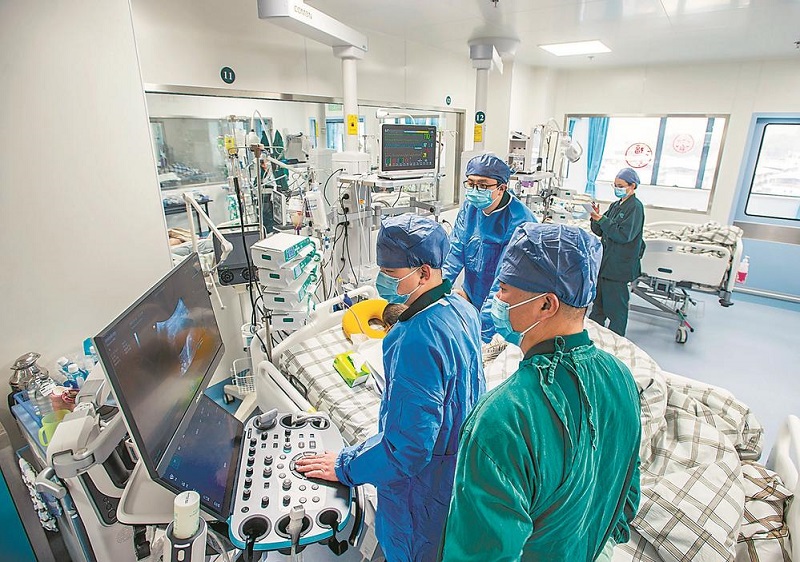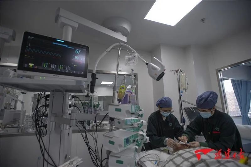 ▲1月21日,福医协和旗山院区重症医疗科,医生们全神贯注盯住仪器,为重症患者做检查。