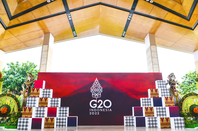 这是在印度尼西亚巴厘岛拍摄的二十国集团领导人第十七次峰会会场外的标识(2022年11月11日摄)。新华社记者 徐钦 摄