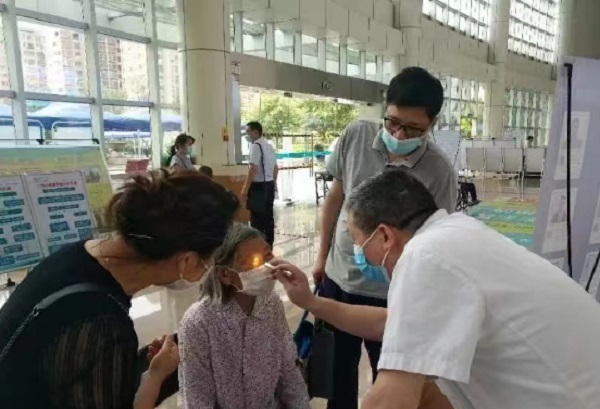 龙岩市第二医院眼科专家在义诊现场为市民进行眼科检查