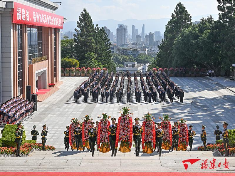 仪式由省委常委、福州市委书记林宝金主持。省委、省人大常委会、省政府、省政协领导,省法院、省检察院领导,驻闽部队领导等出席。省直有关部门主要负责同志,省各民主党派、工商联主要负责同志,省、市机关干部代表,在榕的烈属、老战士、优秀退役军人代表,驻榕武警官兵、公检法干警和消防救援队伍代表,学生代表等参加。(记者 周琳/文 肖春道 吴恩儿/图)
