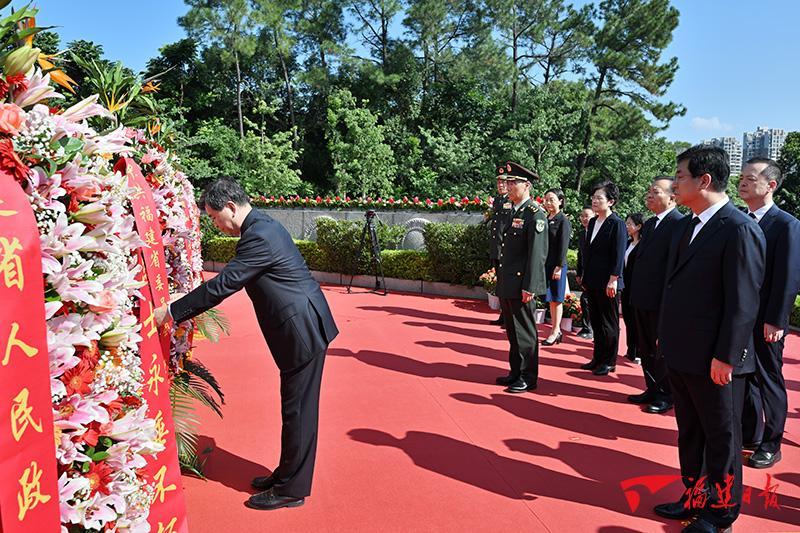 在我国第十个烈士纪念日到来之际,9月30日,福建省、福州市在福州文林山革命烈士陵园隆重举行向革命烈士敬献花篮仪式。省委书记、省人大常委会主任周祖翼,省委副书记、省长赵龙,驻闽部队领导唐兴华,与省、市各界代表一道,向革命烈士纪念碑敬献花篮。
