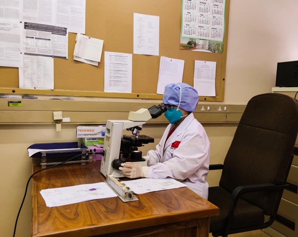 第一是“检验关”。在国内,临床和检验医师各司其职,而在博国,曾雁玲却要变身为横跨多学科的“全能选手”。公主玛丽娜医院没有能看懂血涂片和骨髓涂片的医生,她就从别的科室借来显微镜和旧式的细胞计数器,借助国内医院检验科的后方支持,逐步开展血常规的手工分类、骨髓细胞形态学检查和慢性髓系白血病融合基因BCR/ABL检测等工作,从医院的标本到外院标本,从手工报告单拍照通过WhatsApp发送给医生到检测系统线上电脑报告单方便全国医生查询,检验效率也大大提升,实实在在解决了很多临床问题,获得当地医生声声道谢。第二是“器械关”。骨穿是四大基本操作之一,玛丽娜公主医院却连骨穿针都没有,更别说行骨穿操作。曾雁玲在当地同事帮助下,也得到了国内支持,经过艰难曲折的申请,终于申购到80支骨穿活检针,终于在到博茨瓦纳后的第11个月开展了骨穿检查。最后是“病房关”。由于血液科病人专科化需要有专门的病房,曾雁玲多次和院部协商,陈述开展血液病患者后续治疗的重要性,医院终于特批4张在私人病房的病床给血液科病人强化疗治疗使用。就这样,曾雁玲领导的血液专业组初具雏形,这个团队在2年里共完成1934份血涂片报告单,80份骨髓涂片报告单,48份BCR/ABL融合基因检测,医院血液病治疗实现了跨越式发展。