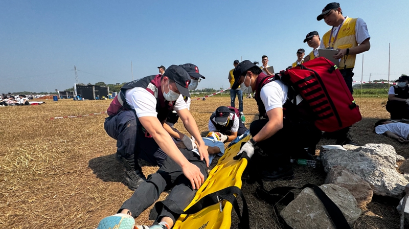国家紧急医学救援(福建)队代表福建省紧急医学救援力量,派出50余名骨干队员,12辆专项特种救援车,跨区域拉动近1000公里至演练现场。