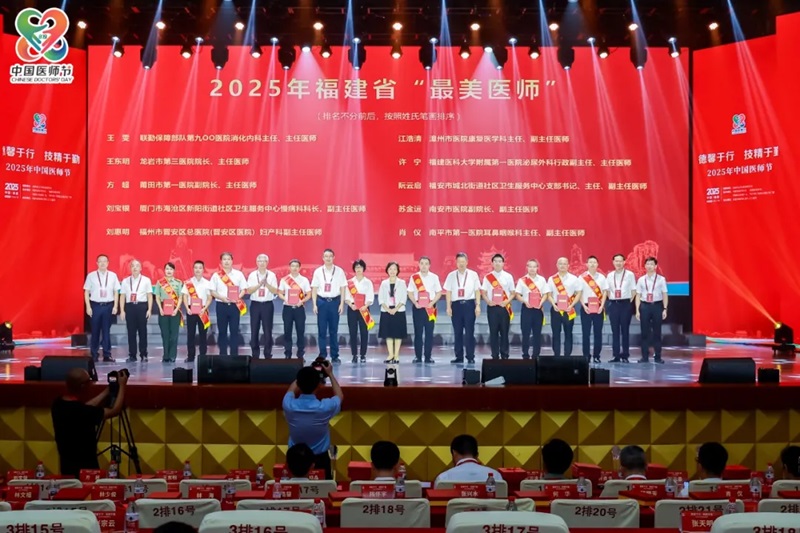 8月17日,由福建省卫生健康委员会指导,省医师协会、省医学会、《福建卫生报》社、FM100.7福建交通应急广播联合主办,联勤保障部队第九〇〇医院承办的“德馨于行,技精于勤”2025年“中国医师节”活动大会在榕召开。