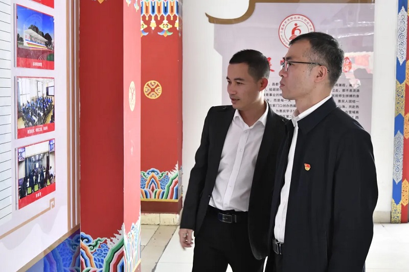 在昌都市第三初级中学,黄国剑调研福建“组团式”教育援藏工作,察看学校党建广场、读书长廊、爱心电话屋等福建援建项目,详细了解教育援藏在师资培养、教学质量提升等方面的相关举措。他强调,要持续深化提升我省“组团式”教育援藏工作,围绕立德树人根本任务,推动教育援藏从“输血” 向“造血”转变,依托援建项目优化校园环境、完善教学设施补齐“硬件”短板,为当地培养更多优秀教学人才,助力昌都教育事业高质量发展。