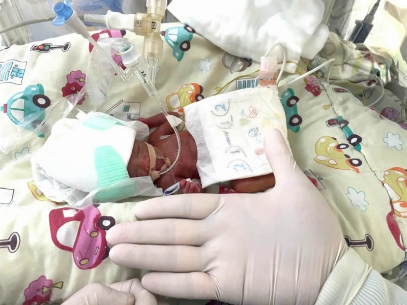 一对“巴掌宝宝”双胞胎从福建医科大学附属福州儿童医院健康出院,刷新了我省救治存活最小胎龄危重症早产儿的纪录。(院方供图)