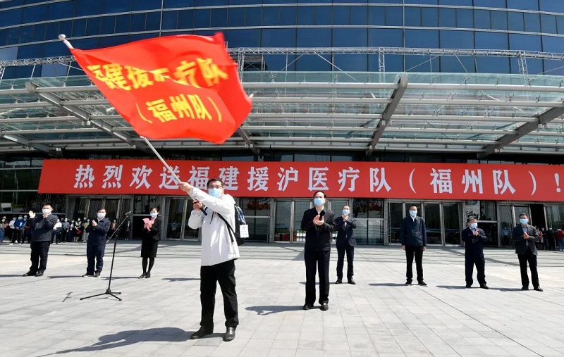 2022年4月7日,欢送福建援沪医疗队(福州队)。张人峰/摄