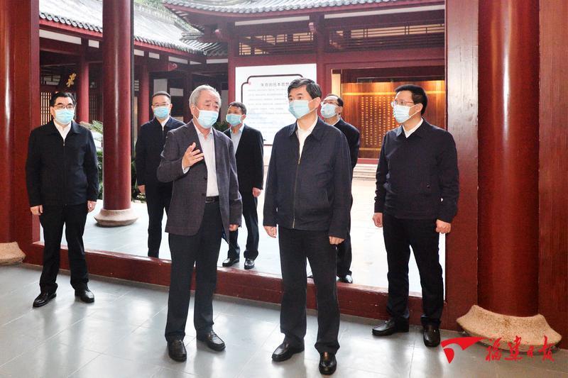 鉴往知来,传承弘扬。武夷山九曲溪畔的朱熹园,是朱子文化的重要发源地之一。朱熹曾在此创建武夷精舍,著书立说、兴教传学。周祖翼认真听取专家的生动讲解,详细了解朱熹生平、理学思想创立及理学研究等情况,感受传统优秀文化的源远流长、博大精深。他说,党的二十大提出,坚持和发展马克思主义必须同中华优秀文化相结合,体现了我们党强烈的文化自信与文化自觉。要推动中华优秀传统文化创造性转化、创新性发展,进一步保护文物、古籍、非物质文化遗产等,挖掘优秀传统文化蕴含的时代价值,转化运用好研究成果,通俗易懂地讲好“朱子故事”,推动我省特色文化焕发新活力。