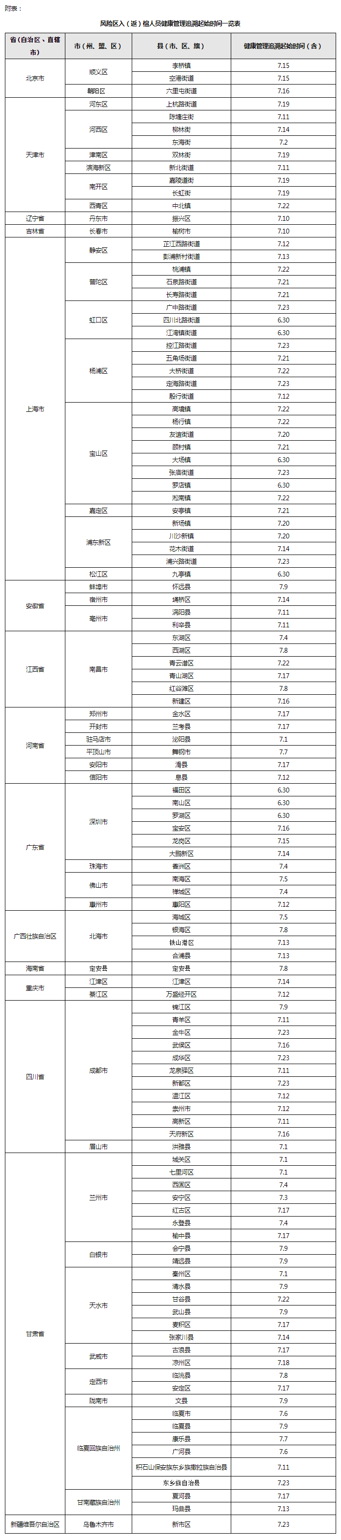 附表:风险区入(返)榕人员健康管理追溯起始时间一览表