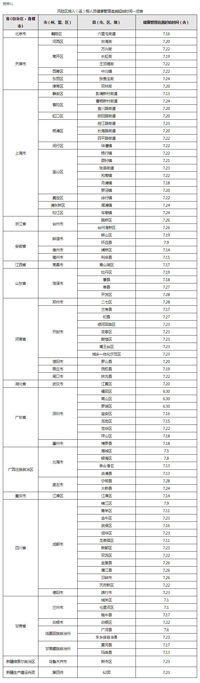 附件:1.风险区域入(返)榕人员健康管理追溯起始时间一览表